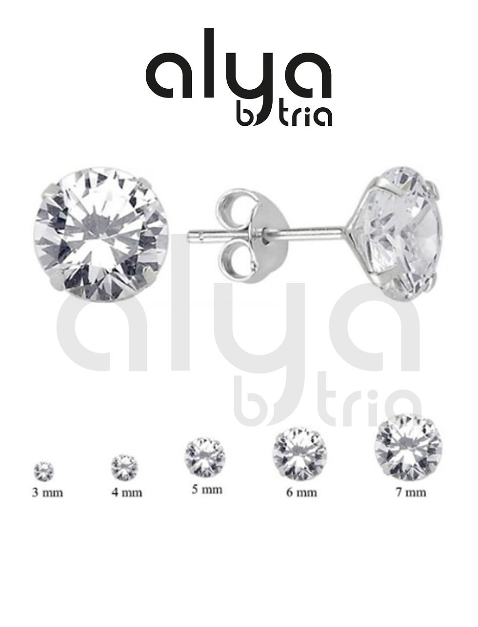 5 adet (Tek Kulak İçin) 925 Ayar Zirkon Tek Taşlı Yuvarlak Küpe (3 mm, 4mm, 5mm,